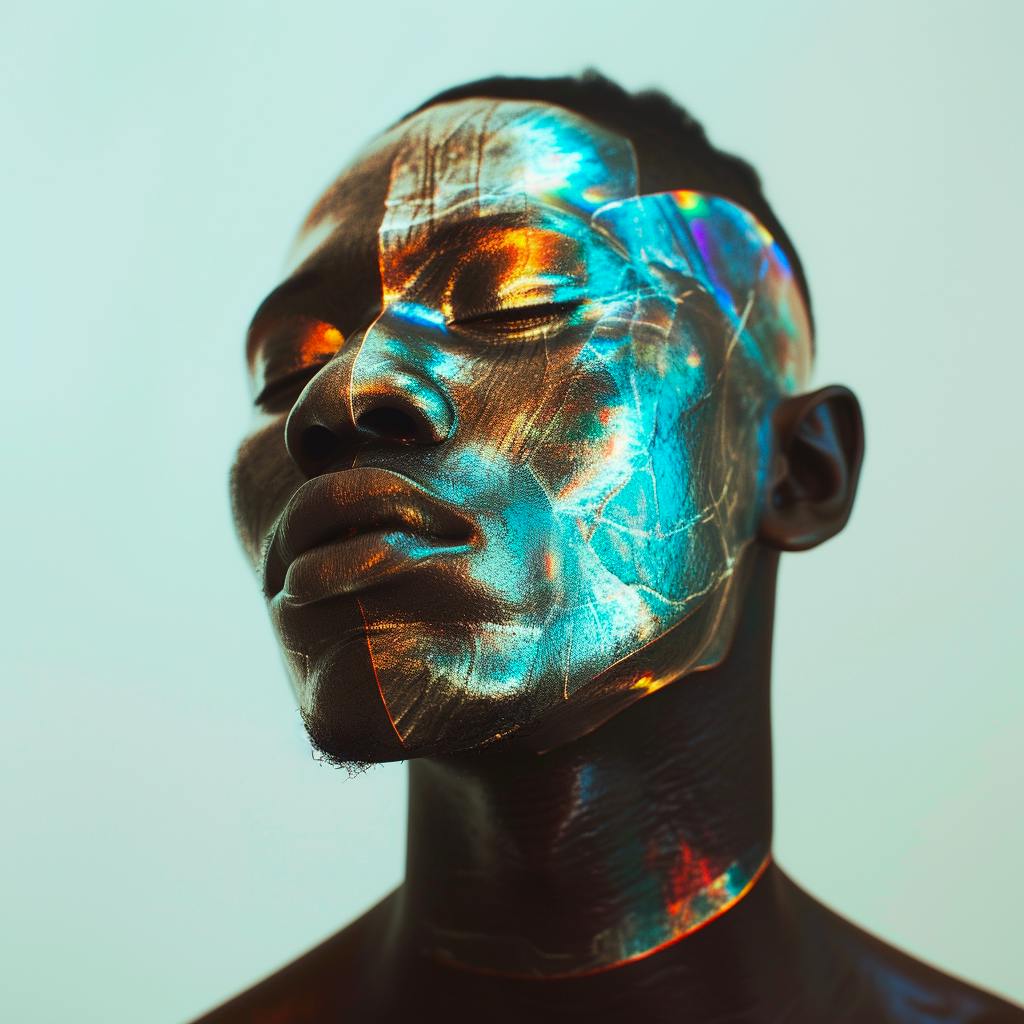 In the heart of an ancient tribe, a monumental revelation occurs as they uncover a luminous, reflective mask concealed within the depths of a sacred tomb.