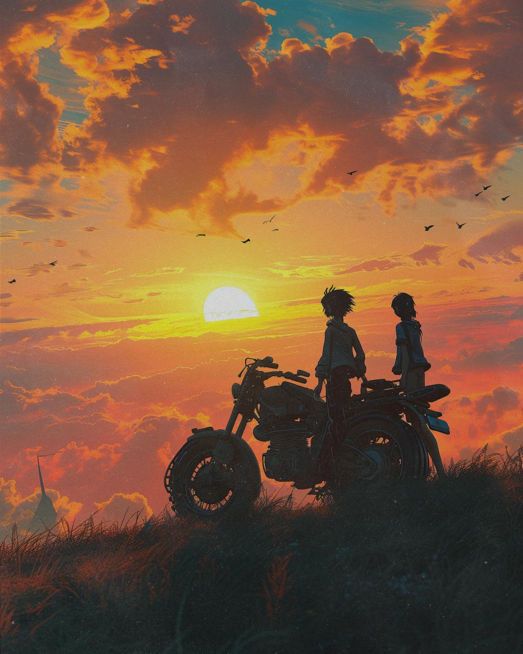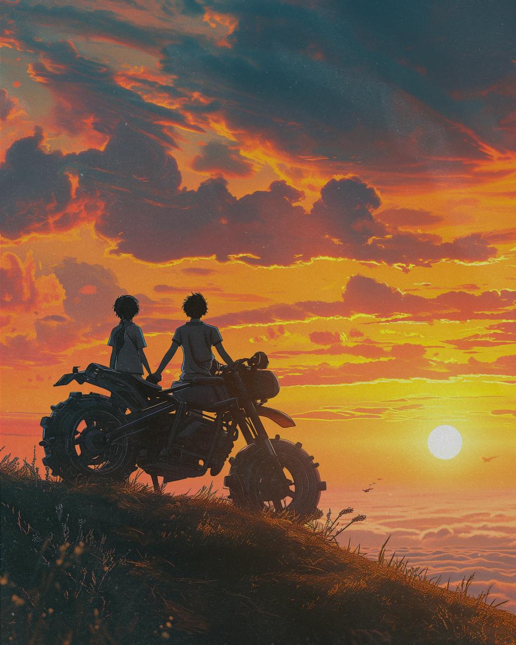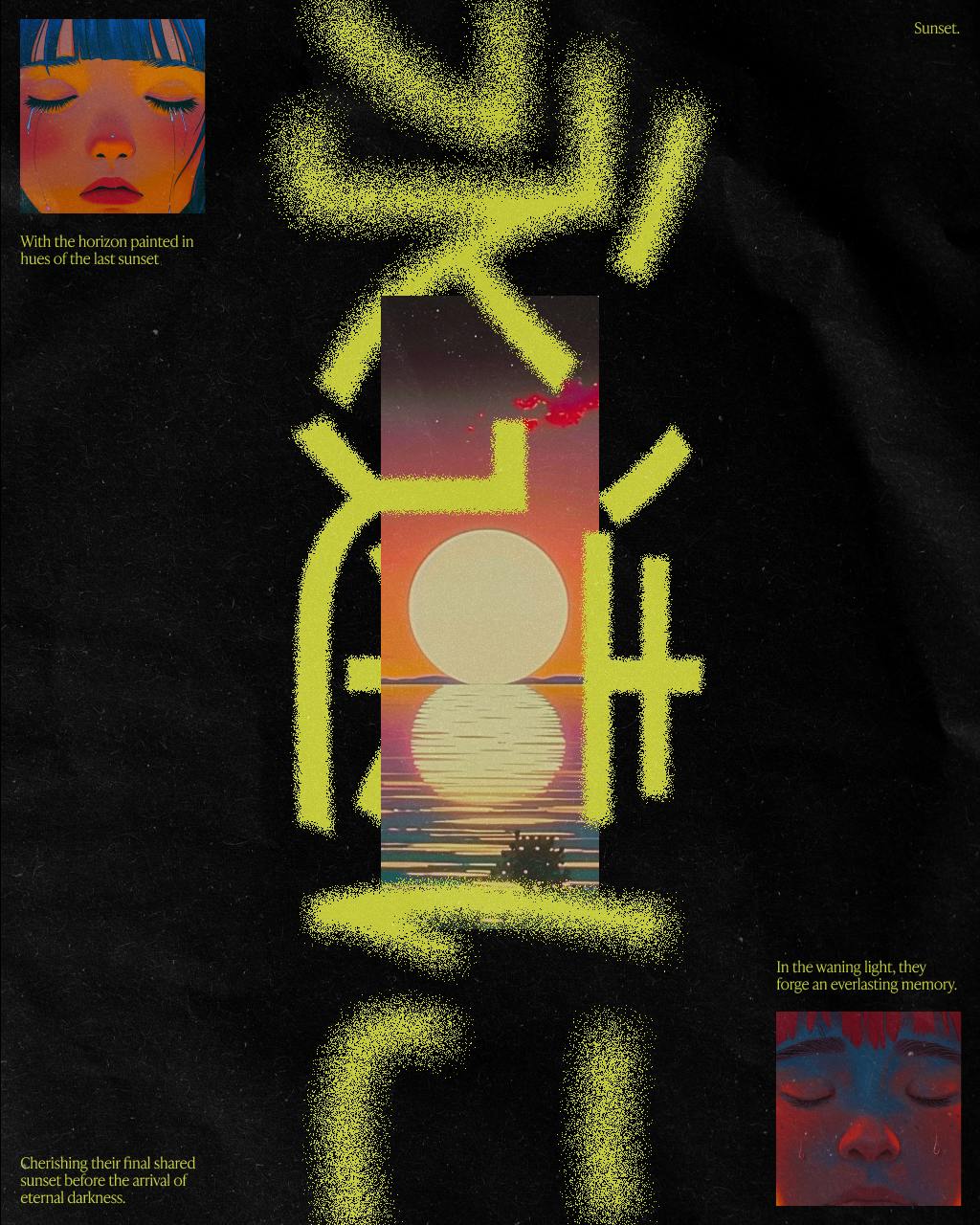 With the horizon painted in hues of the last sunset, Asher and Luna pause, their hearts heavy yet filled with gratitude. In the waning light, they forge an everlasting memory, basking in the serene beauty of a world bidding farewell to the sun, cherishing their final shared sunset before the arrival of eternal darkness.